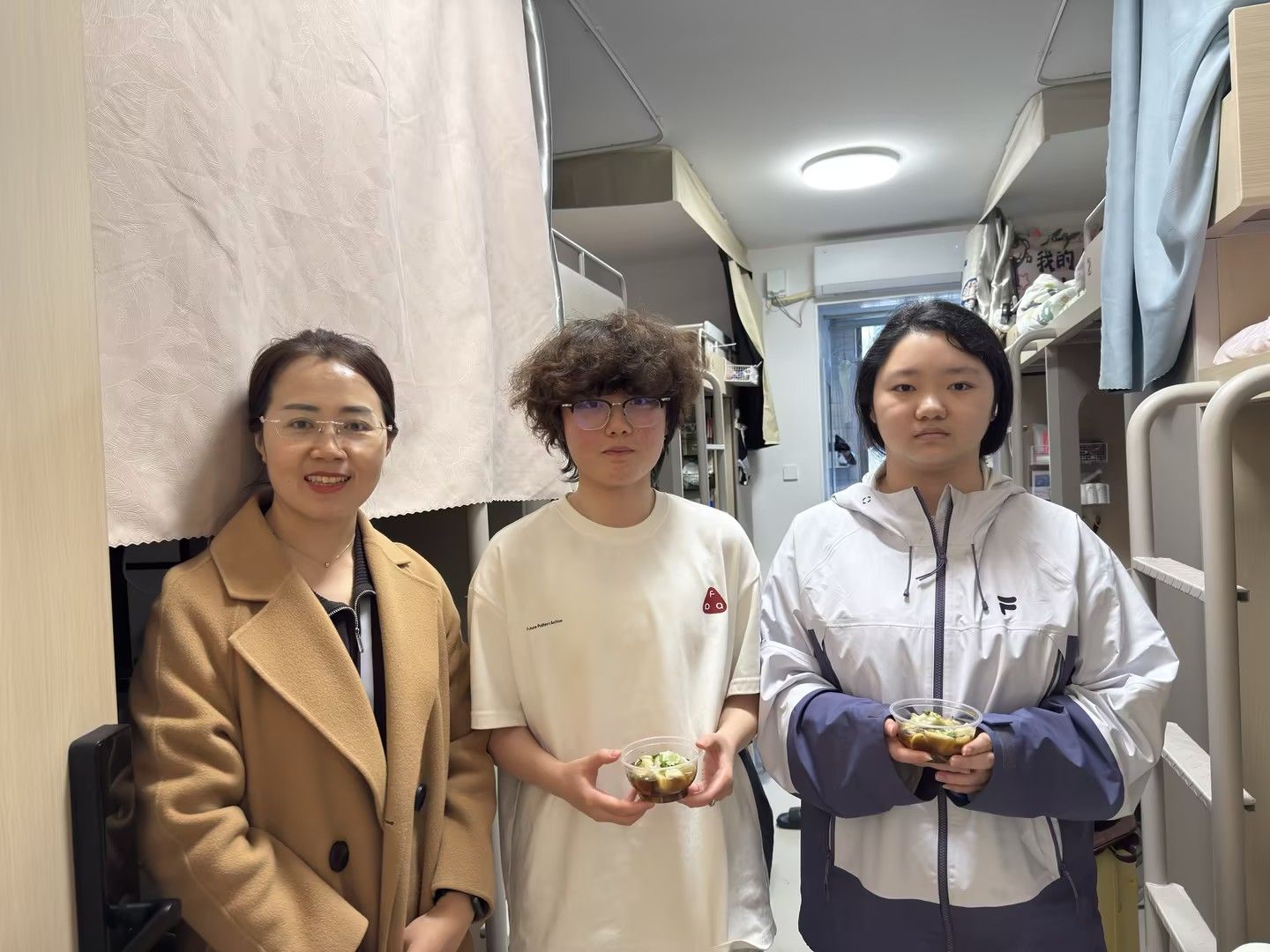 汤圆出锅后,老师们端着碗"闯"进了宿舍