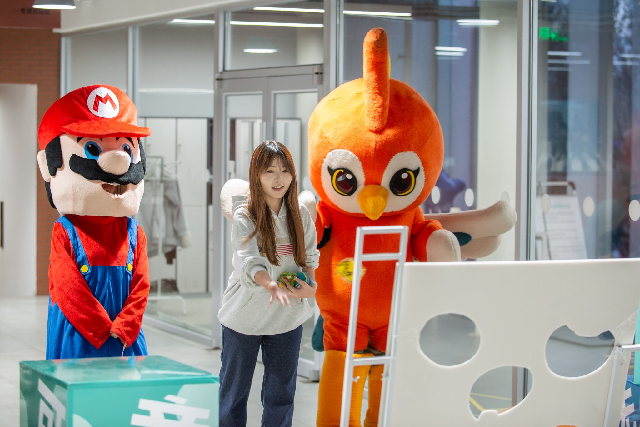 健身房门口的投沙纳福区,成为了活动的热门打卡地。大家手持沙包,瞄准彩头目标凝神投掷,每一次出手都伴随着阵阵欢呼,简单有趣的玩法,不仅解压过瘾,更让大家在互动中收获了新年新学期的第一波好彩头,每个人的脸上都洋溢着灿烂的笑容,满是欢喜与暖意。
