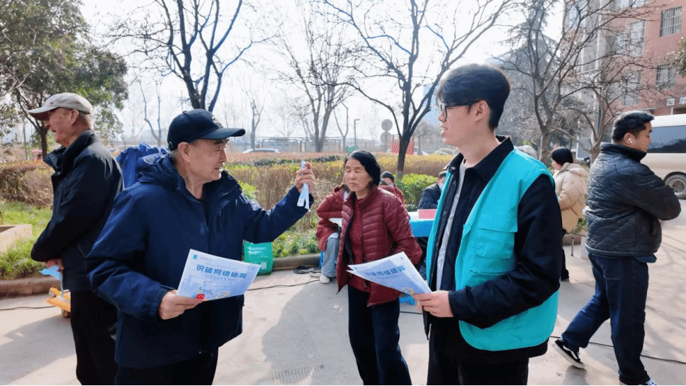 在社区工作人员的指引下,志愿者们带着反诈宣传书,深入社区广场开展宣传。他们针对老年群体的认知特点,全程使用通俗易懂的语言,确保反诈知识能被老人们轻松理解。
