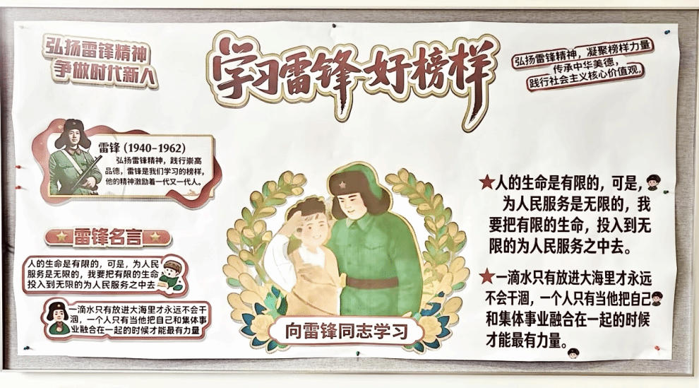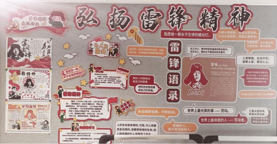 从构思到落笔,从排版到点缀,每一块软木板背后,都藏着同学们对雷锋精神的理解与践行,这些用心的创作,把一块块软木板变得温暖又闪亮。接下来,就让我们一起来看看这些用心之作,看谁能凭实力,在这些“温情阵地”中C位出道——评选正式开启。
