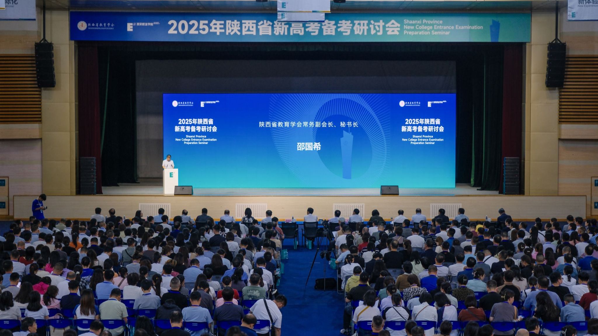 (图一)2025年陕西省新高考备考研讨会9月21至22日,由陕西省教育学会与陕西新时代教育研究院联合主办、西安欧亚学院承办的2025年陕西省新高考备考研讨会在我校召开。研讨会旨在使广大教师更进一步理解新高考改革方向、学科命题趋势、完善复习备考策略,交流教学管理探索与实践,做好我省新高考备考工作。来自全省各地市教研部门、普通高中学校校长及各学科教师共计1300余人参加。中国教育发展战略学会副会长、教育考试专业委员会理事长、...