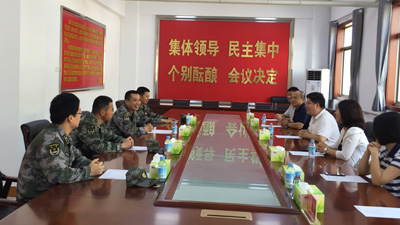 八一建军节来临之际,7月24日,我校党委书记于孟晨,校长助理张乐芳,学生发展处处长周岚,党委办公室副主任赖志彬,学生发展处副处长兼团委书记董杨,团委副书记余飞虎、资助管理中心主任多瑛一行赴我校军训承训部队...