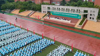 (图一)启动仪式现场图片 (图二)学校党政领导、部队领导、各分院、职能处室领导出席启动仪式 (图三)启动仪式由学生发展处处长周岚主持 (图四)校党委书记于孟晨教授作军训动员讲话 (图五)校...