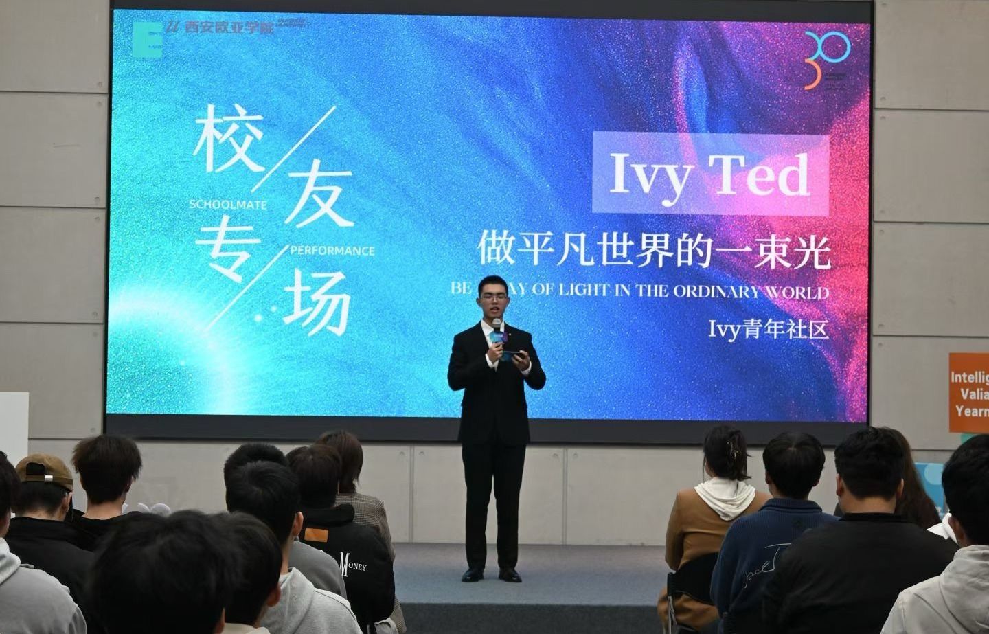西安欧亚学院Ivy青年社区开展Ivy Ted校友专场活动,邀请三位优秀学生以及校友分享成长经历,围绕奋斗、探索与坚守,激励学子打破迷茫、勇于尝试,传递“平凡亦可发光”的信念。