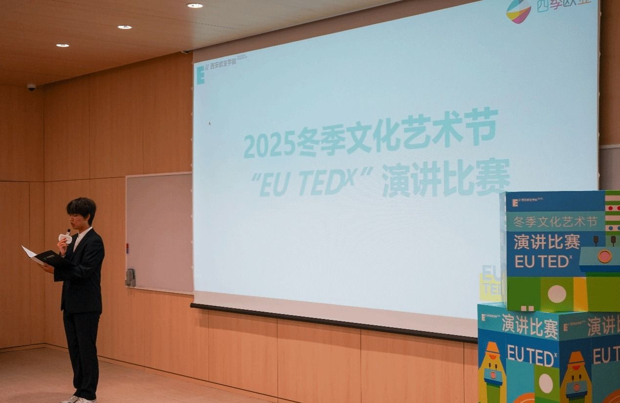 2025年11月26日,西安欧亚学院冬季文化艺术节“EU TEDx”演讲比赛(决赛)在春山里E101木礼堂举办