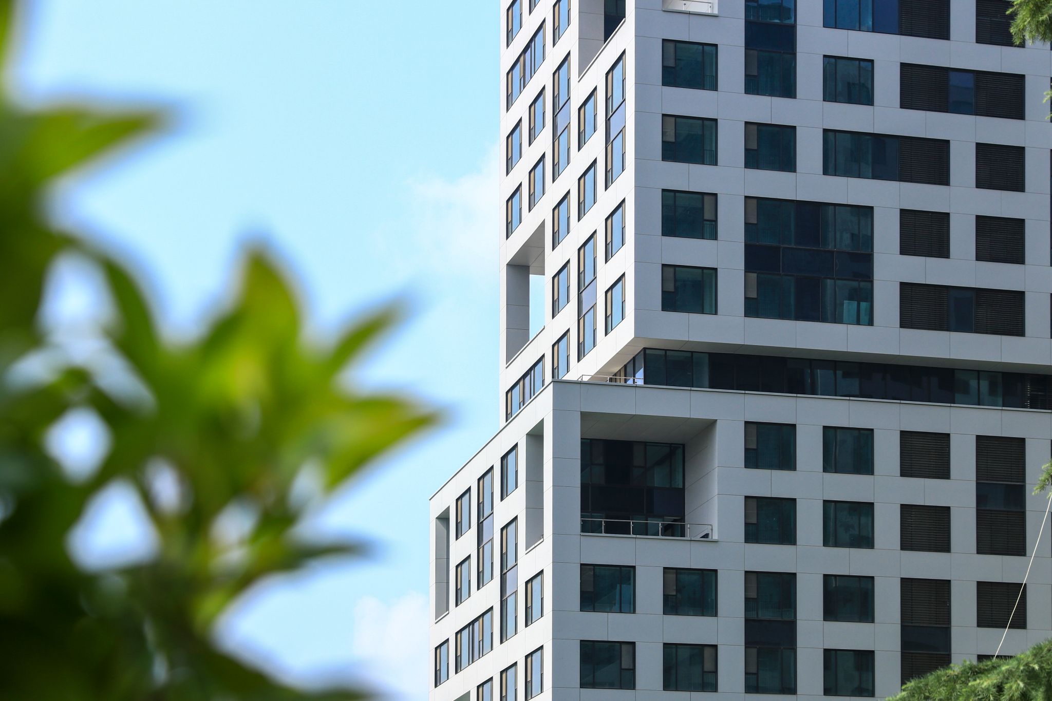 以砖红为主体色,搭配灰、白、蓝的外立面体现着新工业时代的艺术审美,自然而朴素。位于大厅入口东侧的垂直绿化墙,借鉴世园会立体绿化概念,既丰富了空间结构层次和景观艺术效果,又为建筑本身带来一股生命力。细节处的小心思,比如对色温的控制、家具地毯的选择,都让身处其中的人仿若置身于一个艺术的空间,处处感受到“将人的感受放置在第一位”的设计理念。