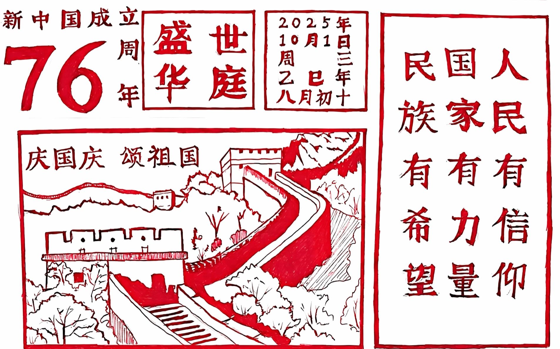 为热烈庆祝中华人民共和国成立76周年,西安欧亚学院第二青年社区分党委组织开展庆国庆手抄报活动。本次活动共收到手抄报30份,同学们一笔一画,将祝福凝入笔尖,愿山河无恙,祖国繁荣昌盛。